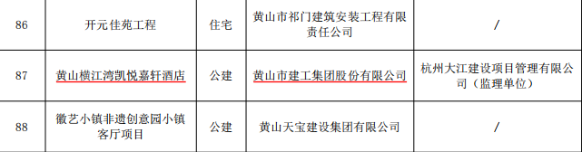 近日,黃山市住房和城鄉(xiāng)建設局公布了2025年度黃山市建設工程“迎客松杯”獎獲獎名單。黃山建工集團承建的安徽黃山省級糧食儲備庫倉庫擴建9#平房倉項目、黃山區(qū)2019-15地塊6#樓項目及黃山橫江灣凱悅嘉軒酒店項目成功斬獲三項“迎客松杯”獎。