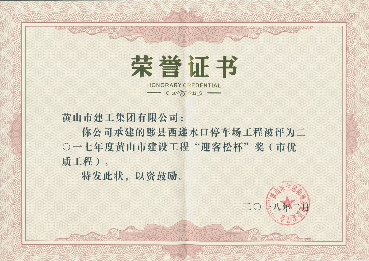 2018年度黃山市建設(shè)工程優(yōu)質(zhì)工程獎